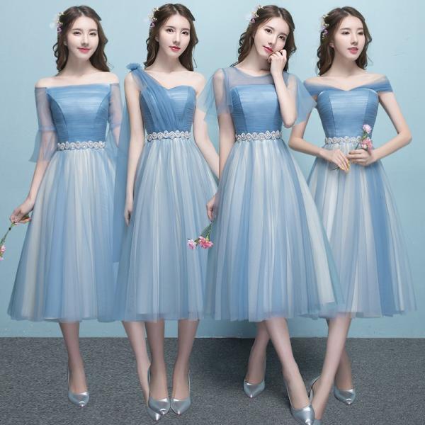 5タイプ入荷 ブルー ブライズメイドドレス パーティードレス Stylish17 ポンパレモール
